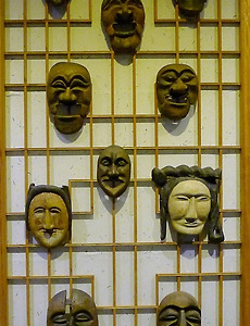 한국의 탈춤에 쓰이는 각종 탈들화회별신굿놀이, 가산오광대, 강령탈춤, 고성오광대, 동래들놀음, 송파 산대놀이, 수영들놀음, 양반탈춤, 양주별산대놀이,토영오광대, 퇴계원산대놀이, 은율탈춤, 바물ㄱ박물관에 들렸다가 가장 관심있는 전시가 보였다.그건 바로 여러 탈들이 전시되어 있는 장소였는데, 생각보다 다양한 탈들이 있었다.동아리를 풍물패 했는데, 민요와 탈춤도 조금 배우기도 했고, 개인적으로 전통적인 것에 관심이 많은 편이기에 유익한 볼거리였다. 탈들을 보니 기껏해야 하회탈과 양주별산대놀이용 탈만 알고 나머지는 좀 낯설었다.고등학교 미술 시간 때인가는 신문지에 풀을 먹여 탈을 만들어 보았던 것도 같은 기억이 어렴풋이 난다.