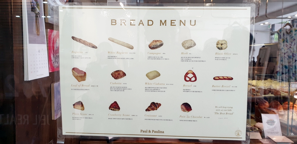 메뉴는 바게트, 스콘, 크로와상, 프레즐, 버터 프레즐, 치아바타, 블랙 올리브, 깜빠뉴 같은 것이 있는데, 특히 좋아하는 빵은 블랙 올리브이다.