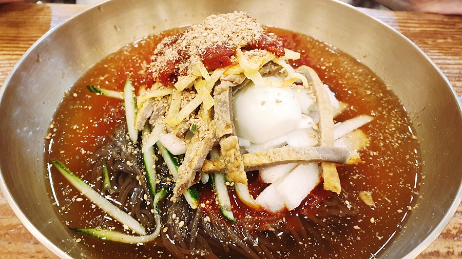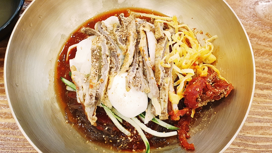 섞어냉면은 일반 물냉면의 육수 맛 보다는 시원한 연변냉면 스타일로 냉면보다는 황태막국수 국물 맛 느낌이 더 강하다. 개성있는 냉면이 시원해 곧 잘 생각나는 냉면이다. 비빔냉면은 이번에 처음 먹어봤는데, 생각보다 비빔이 더 맛있네... 섞어냉면 먹을 때는 위에 올라간 육전이 차가워서 약간 딱딱하게 느껴졌는데, 비빔은 육전이 덜 차가워서인지 덜 딱딱하고 소스와 잘 어울린다.
