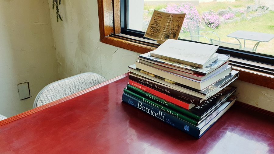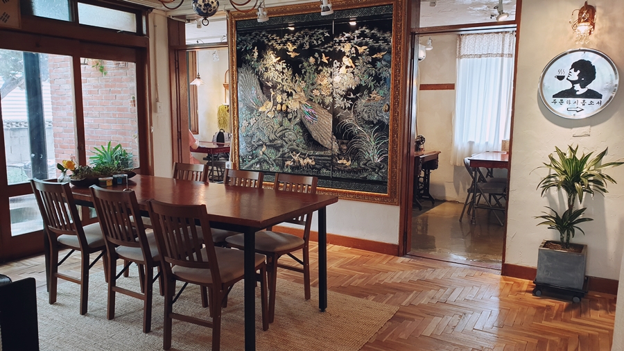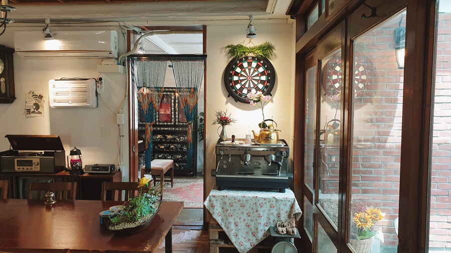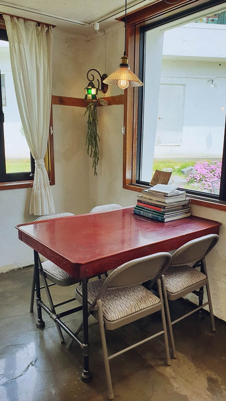 카페 구석 구석에는 책과 도자기, 드라이플라워에 옛날 물품이 진열되어 있어, 어떤 옛 물건이 있는지 구경할 수 있다.
