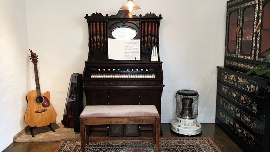 전에 방으로 쓰이던 곳은 그대로 살려놓은 것 같다. 오래된 소파와 테이블, 카페트, 선풍기, 그리고 오르간에 자개장까지 있으니 과거 영화를 찍으려고하는 세트장 같다.