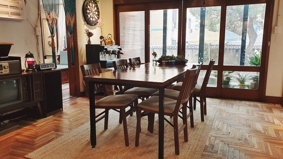 큰방 외에 다른 방은 넓게 창문이 트여있다. 밝은 햇살이 창을 타고 들어와 밝다. 이곳의 테이블은 밥상을 개조해 만든 것도 재미있다.