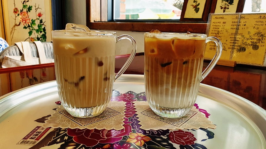 5월인데 벌써 여름같다. 밖의 온도는 33도... 정말 지구가 뜨거워지고 있다. 선풍기 바람만으로도 여름을 지낼 수 있던 때가 그립다. 낮의 열기가 뜨거워 결국 아이스 커피이다. 그런데 진동벨이 울리고 가보니, 새참 먹는 것도 아닌데, 옛날 쟁반에 주신다. 이런건 어디선 난거야 했는데, 카페에서 나온 후 장을 보러 롯데마트에 갔는데 거기에 똑같은 걸 팔고 있네 ㅋㅋ 커피는 생각보다는 평범한 편이다. 커피보다는 밀크티가 더 괜찮은 것 같다. 커피는 맛이 있다고는 하기그런데, 마실만하다. 그런데 커피 맛보다 분위기가 주는 맛이 더 강렬해 후에 또 들리게 될 것 같다.