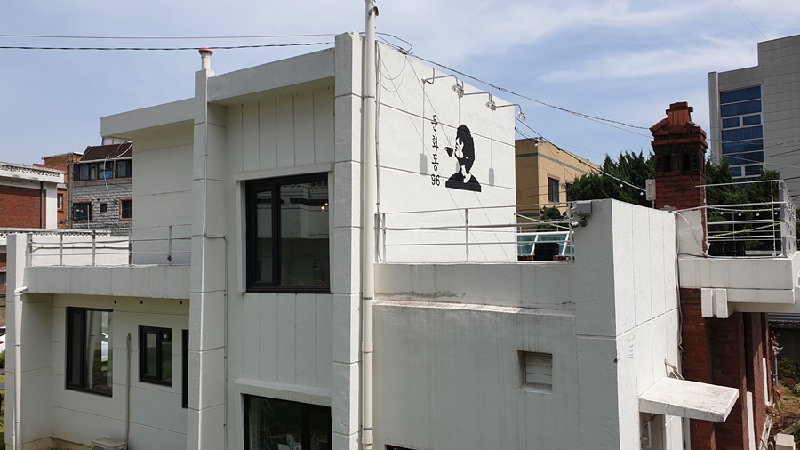 오래된 동네로 들어가니 하얀 건물의 카페가 보인다. 오래된 주택이란 것이 담벼락에서 먼저 느껴졌다. 담 넘어 들어오지 말라고 병을 깨서 박아 놓은 것이 그대로 있다. 그러고 보니 어렸을 때에 주택가에는 이런 집이 많이 있었다.