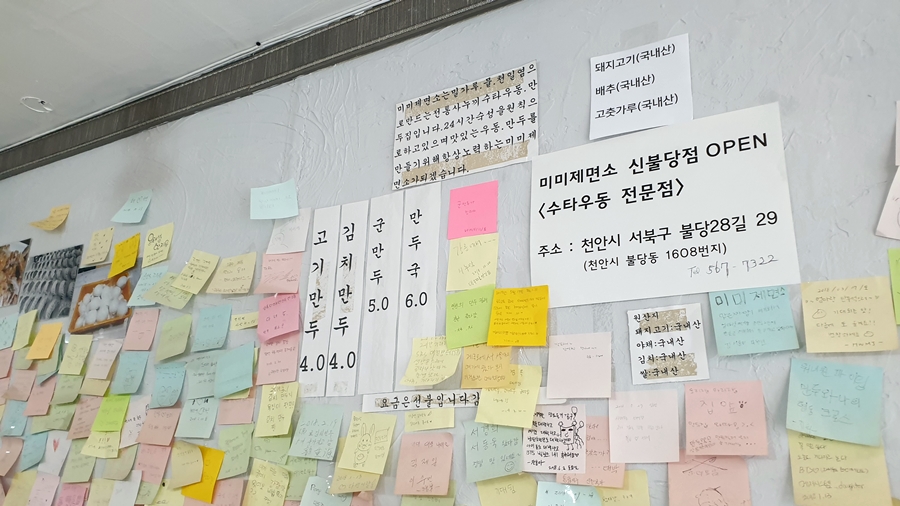 갑자기 빵이 먹고 싶어서 성정동 뚜쥬르에 들렸다가 돌아가려는데 가구거리 쪽으로는 차가 너무 막혀서, 돌아가나가려고 5단지 쪽으로 향했다. 5단지 방향으로 가다보니, 근처에 미미제면소가 있던게 생각이 나서 '만두'도 생각이 나서 잠시 미미제면소에 들렸다.