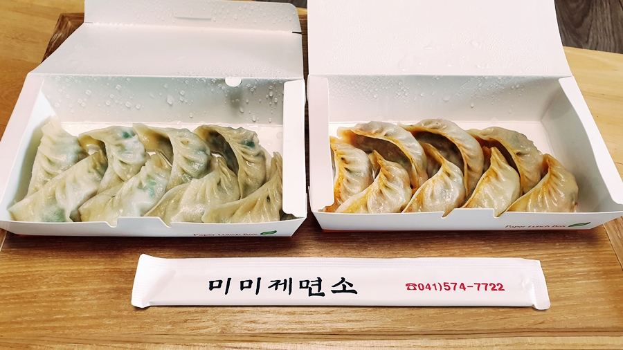 생각보다 만두는 작았다. 요즘은 만두피가 얇고 속이 꽉찬 만두가 많던데, 여기는 만두피가 좀 있고, 속은 간소하게 들어있다. 그런데 피가 맛있어서 오히려 맛이 좋다. 고기만두는 꽤 담백하고, 김치만두도 맵지않고 약간 고기만두 스타일의 김치만두이다. 천안에서는 두정동에 있는 좋은 만두집인 '광명만두'에서 만두를 자주 사먹었는데, 광명도 좋지만, 이제는 내 입맛과 좀더 맞는 '미미제면소'에서 먹을 것 같다. ㅎㅎ