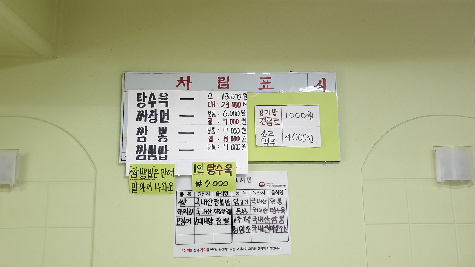 메뉴를 본 후 우린 탕수육(소)과 짬뽕 곱배기를 주문했다.