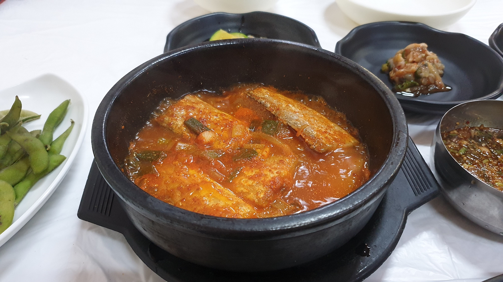 갈치조림은 국내산이긴 한데 생각보다 갈치 사이즈가..... 상당이 작다. 가격대비 나쁘지는 않은 구성이긴 한데 그래도 사이즈가 조금 아쉽긴하다. 하지만 양념이 맛있어서 나중에는 돌솥밥에 비벼먹기도했다.