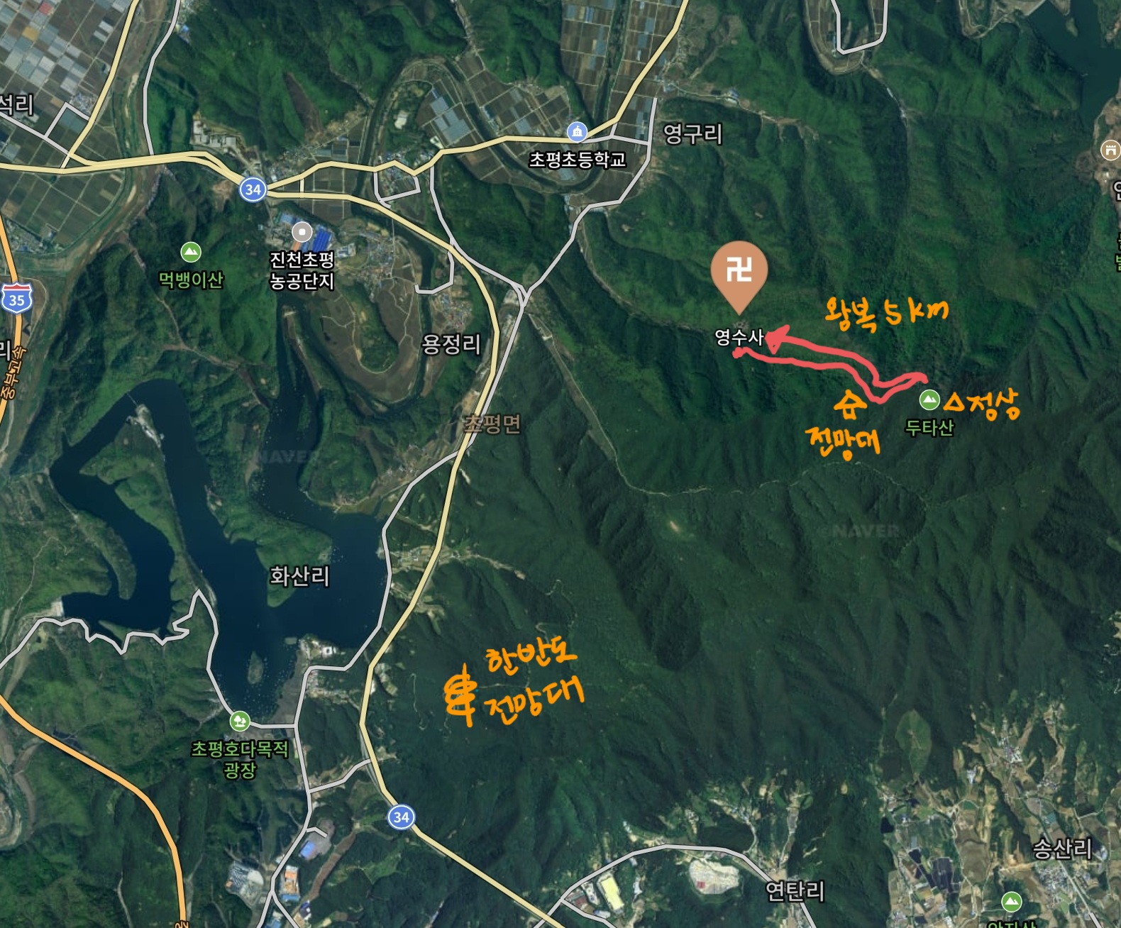 1) 두타산 영수사 코스 (충북 진천군 초평면 영구리길 60-125 영수사 원점코스)