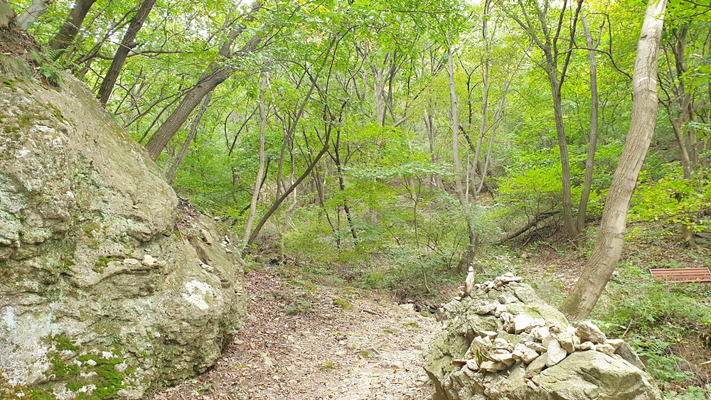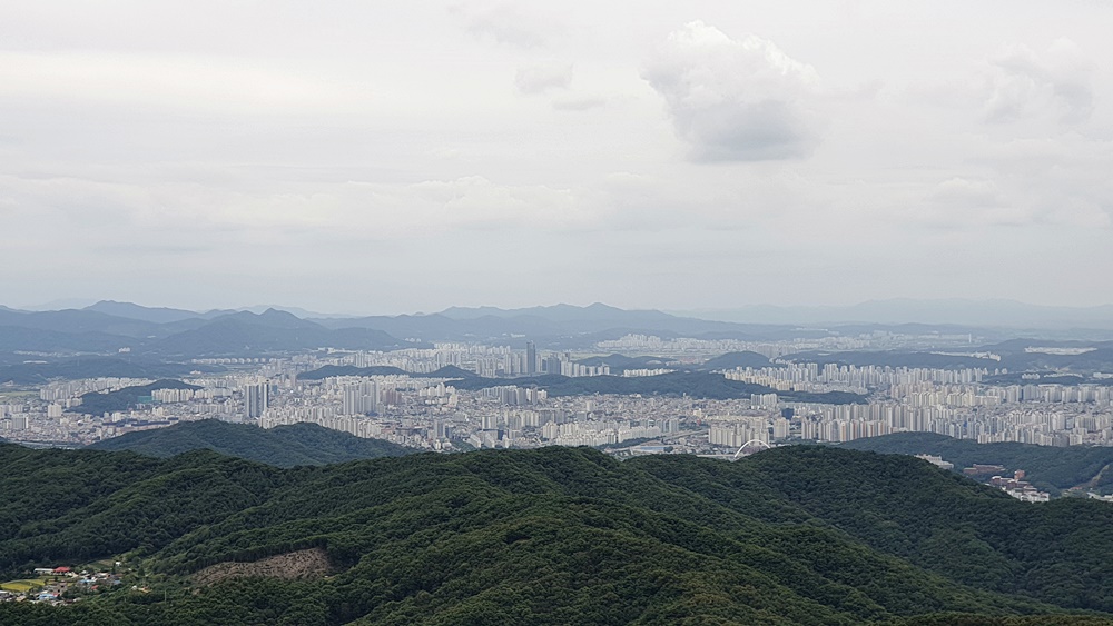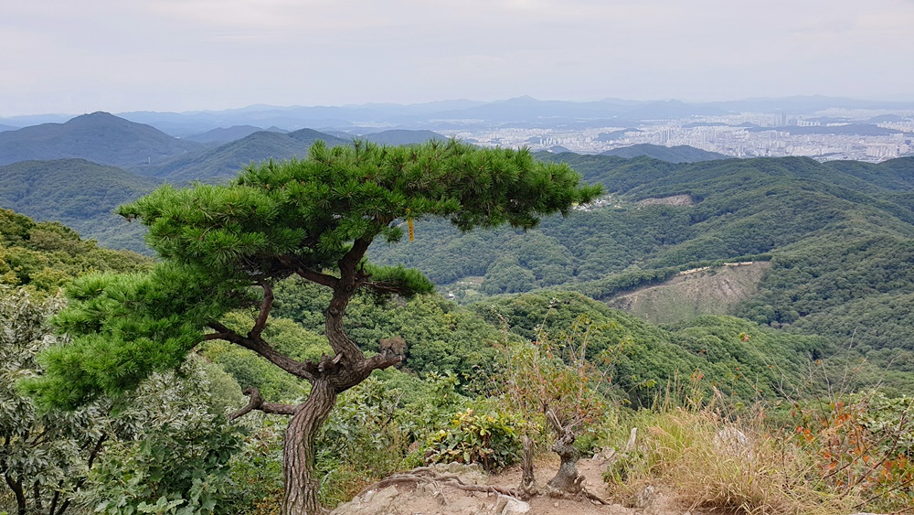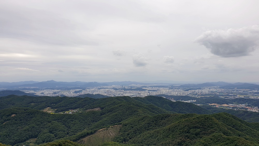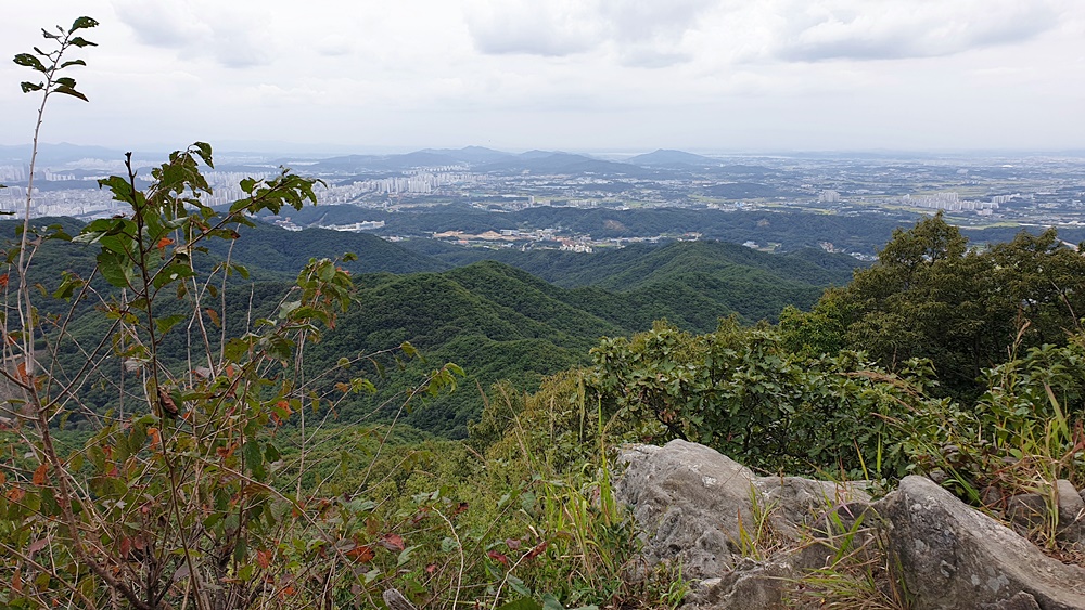 정상에서 샛길 바위가 보이는 곳이 있는데 그곳으로 가면 천안시내를 한눈에 볼 수 있다.