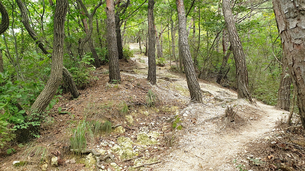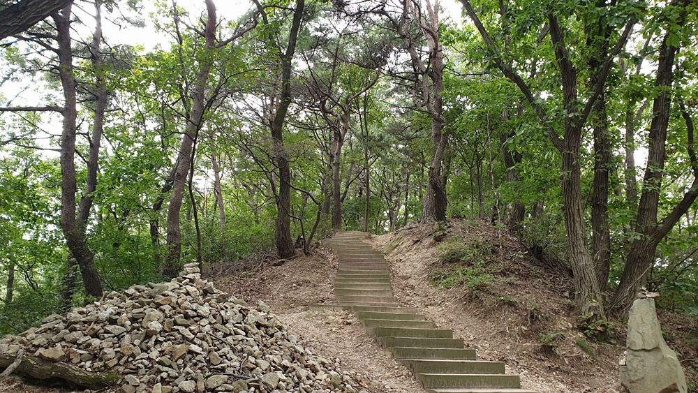 성거산 정상은 나무들이 우거져 주변 풍경을 감상할 수는 없다.