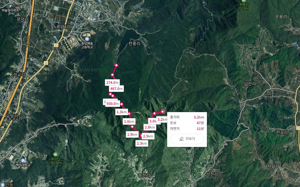 1) 천안 성거산 천흥저수지 원점코스 (충청남도 천안시 서북구 성거읍 천흥리 산 55)