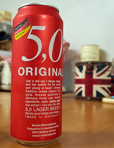 2천원 이하의 저렴한 독일 맥주 5,0 다양한 종류의 5,0 맥주가 있는데 weizen을 사람들이 가장 잘 마시는데, 이번에 마셔본 것은 '라거비어'이다.알콜 5.4%로 일반 맥주보다 아주 조금 높은 도수이다. 라거의 기본으로 보리맥아로 만들어졌다. 라거의 느낌을 살려서 Simply Good, Simple Cool 을 내세웠는데, 가벼운 느낌에 깔끔한 스타일, 찬 맛에 어울리는 맥주이다.첫 모금은 깔끔하게 넘어가는데, 끝 맛에서 약간 씁쓰름 하며 화학적인 맛이 나기에, 고소하며 담백한 맛을 좋아하는 내게는 약간 어울리지 않은 맥주이다. 약간은 진한 색이 끝 맛의 씁쓰름함을 표현하는 듯하다. 그나마 호감이 가는 것이라면 RED CAN...